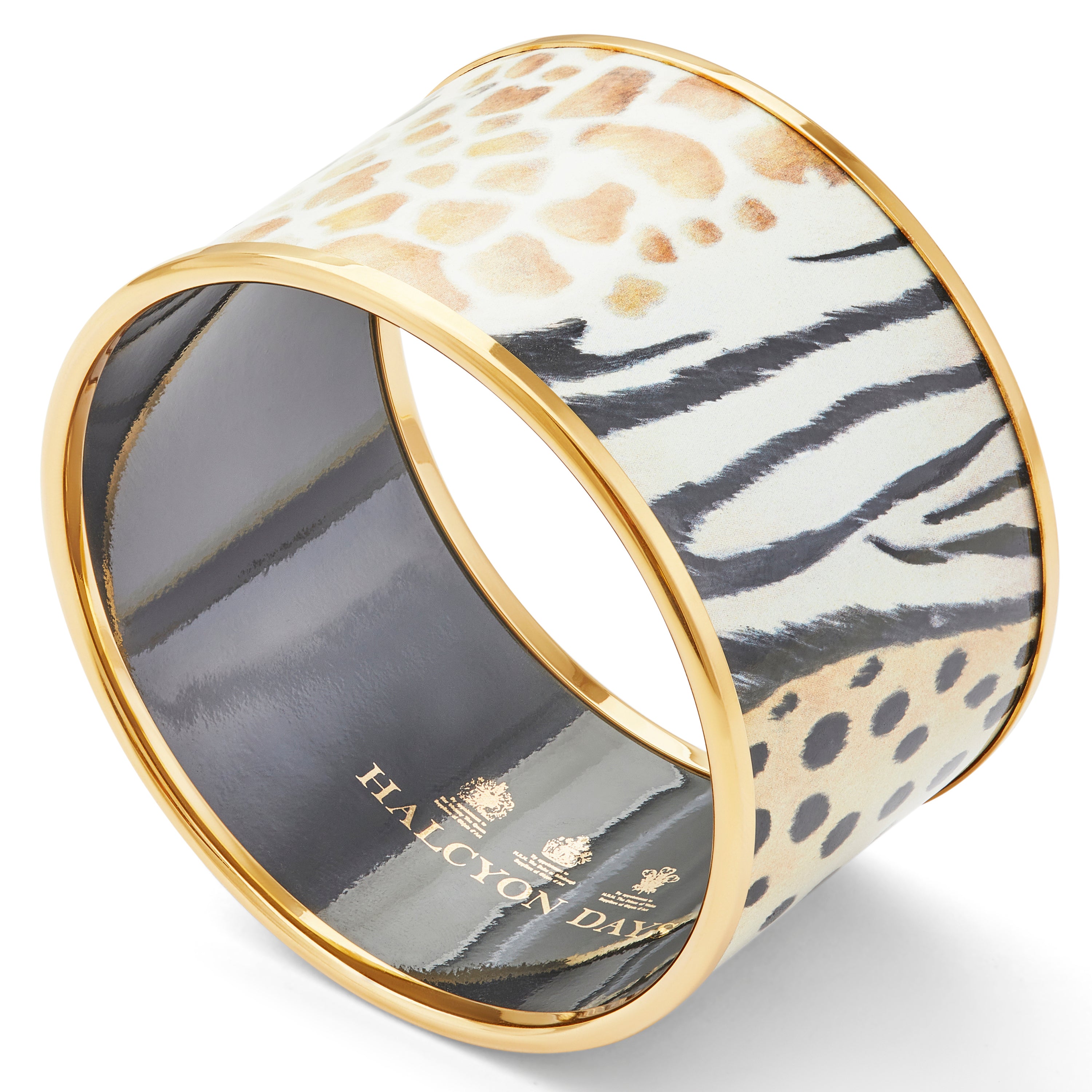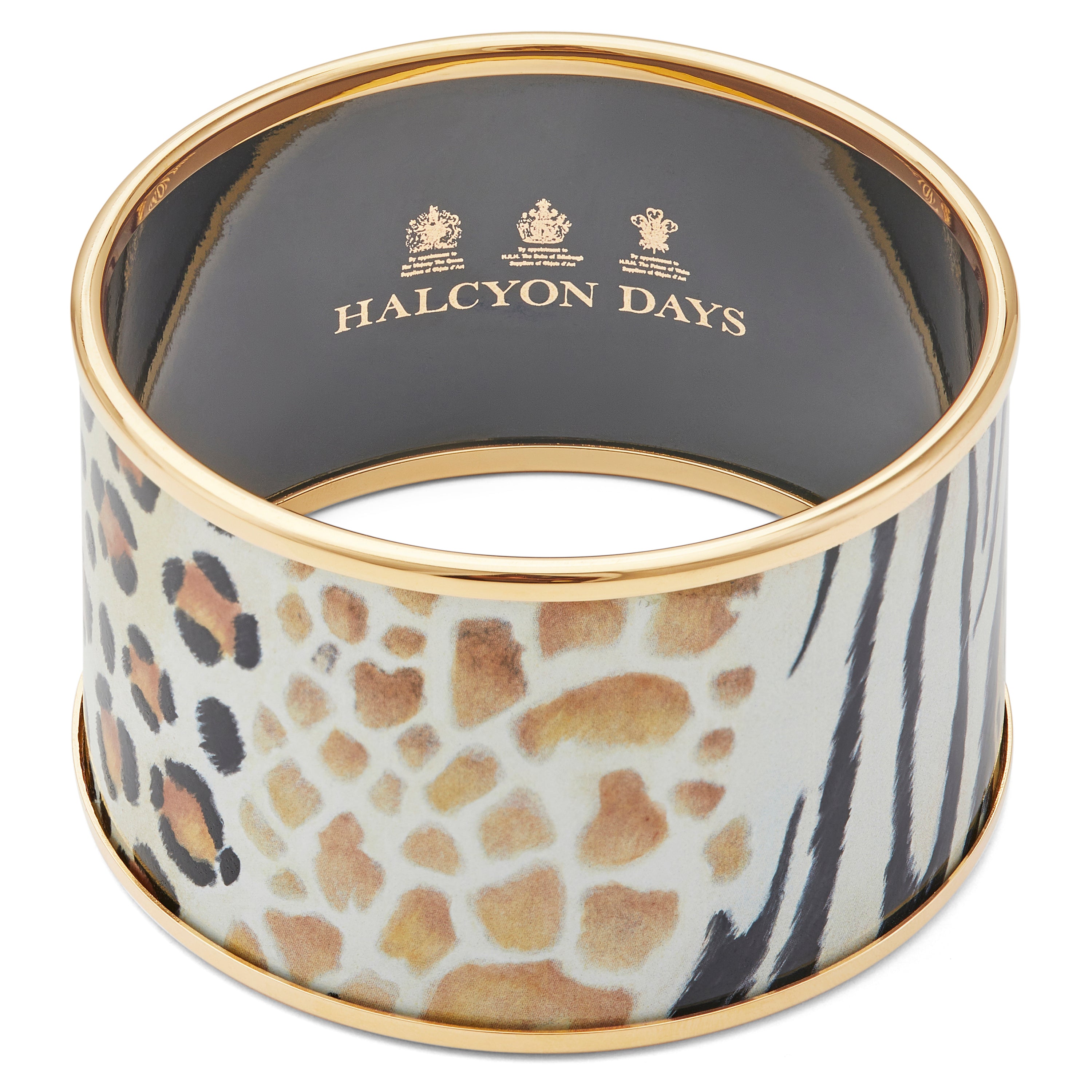 This 4cm statement enamel cuff features a roaringly distinguished design that is sure to have onlookers purring with admiration. It has been handcrafted by the Halcyon Days artisans using ancient techniques.
