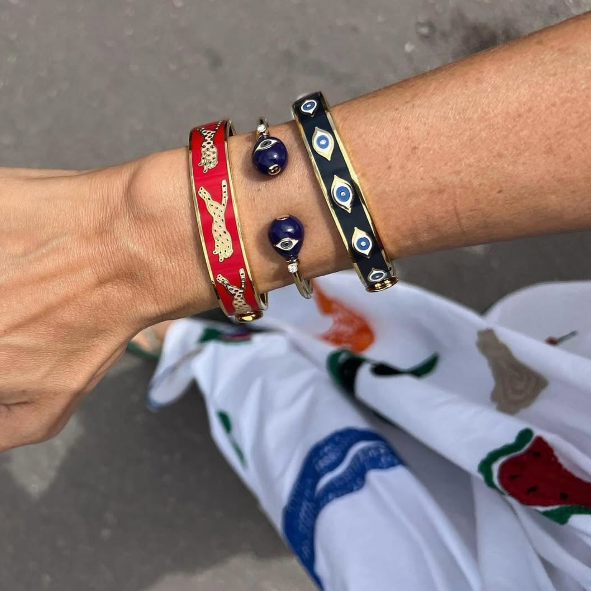 Evil Eye Midnight Blue & Gold Torque Bangle