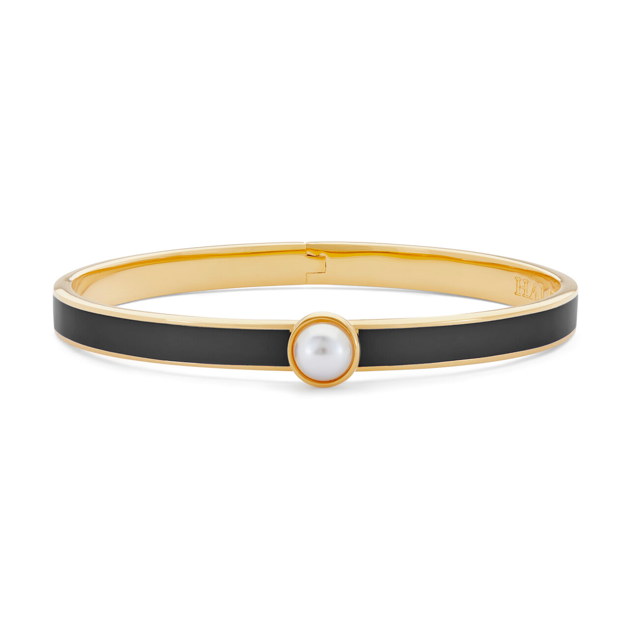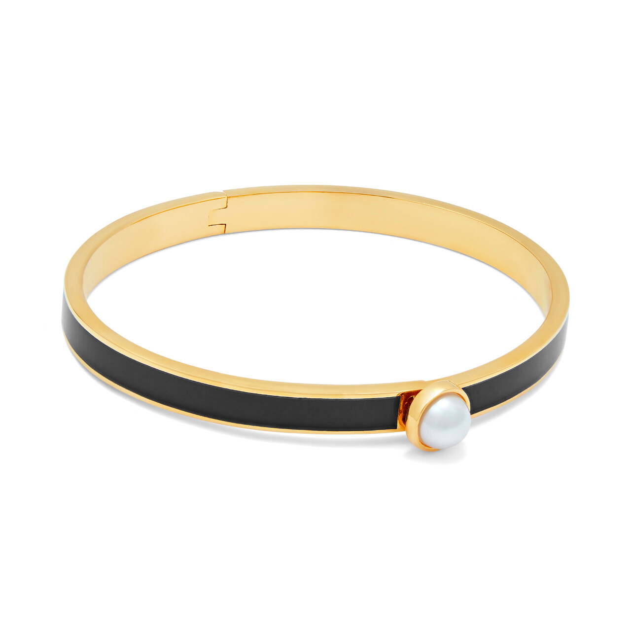Skinny Cabochon Pearl Black & Gold Bangle