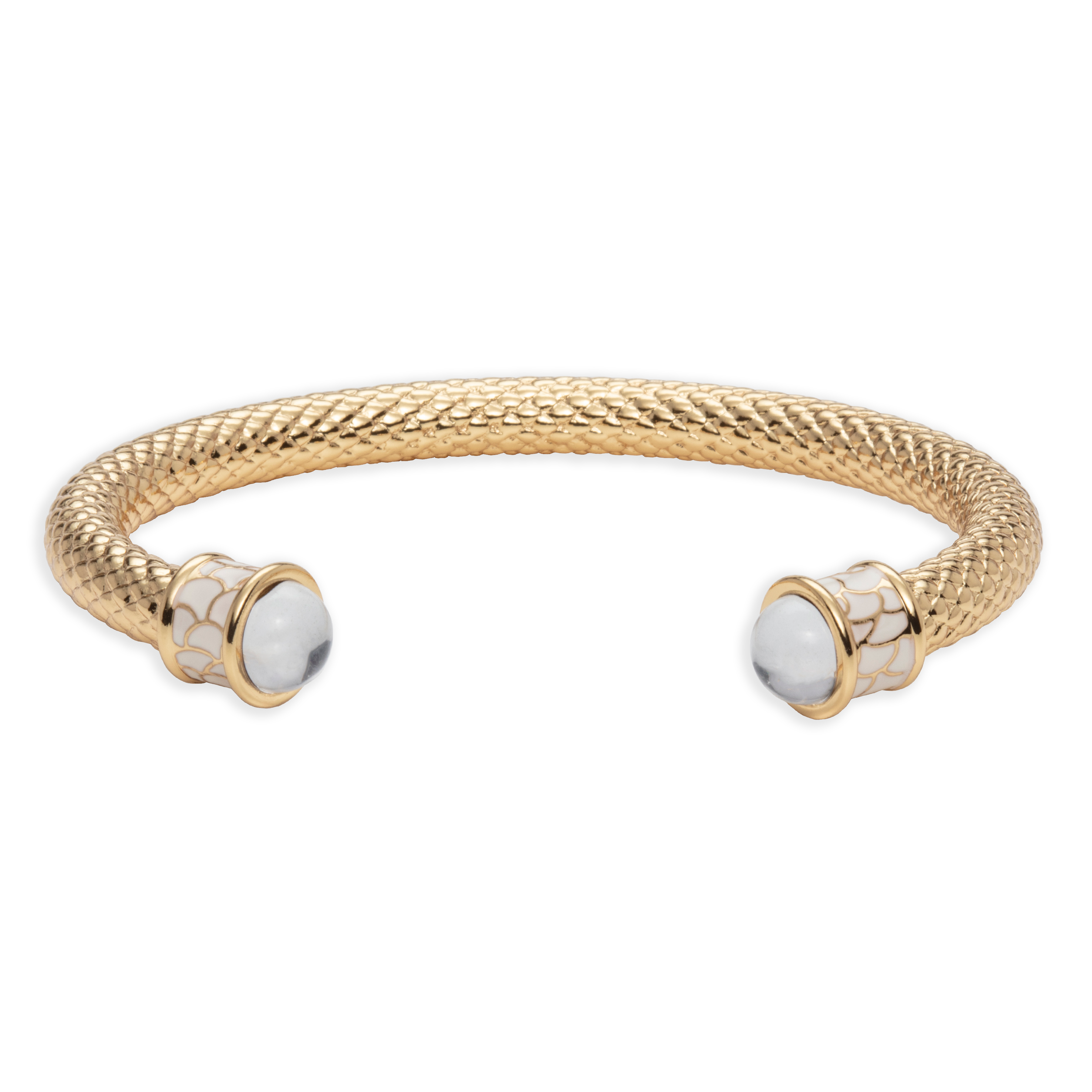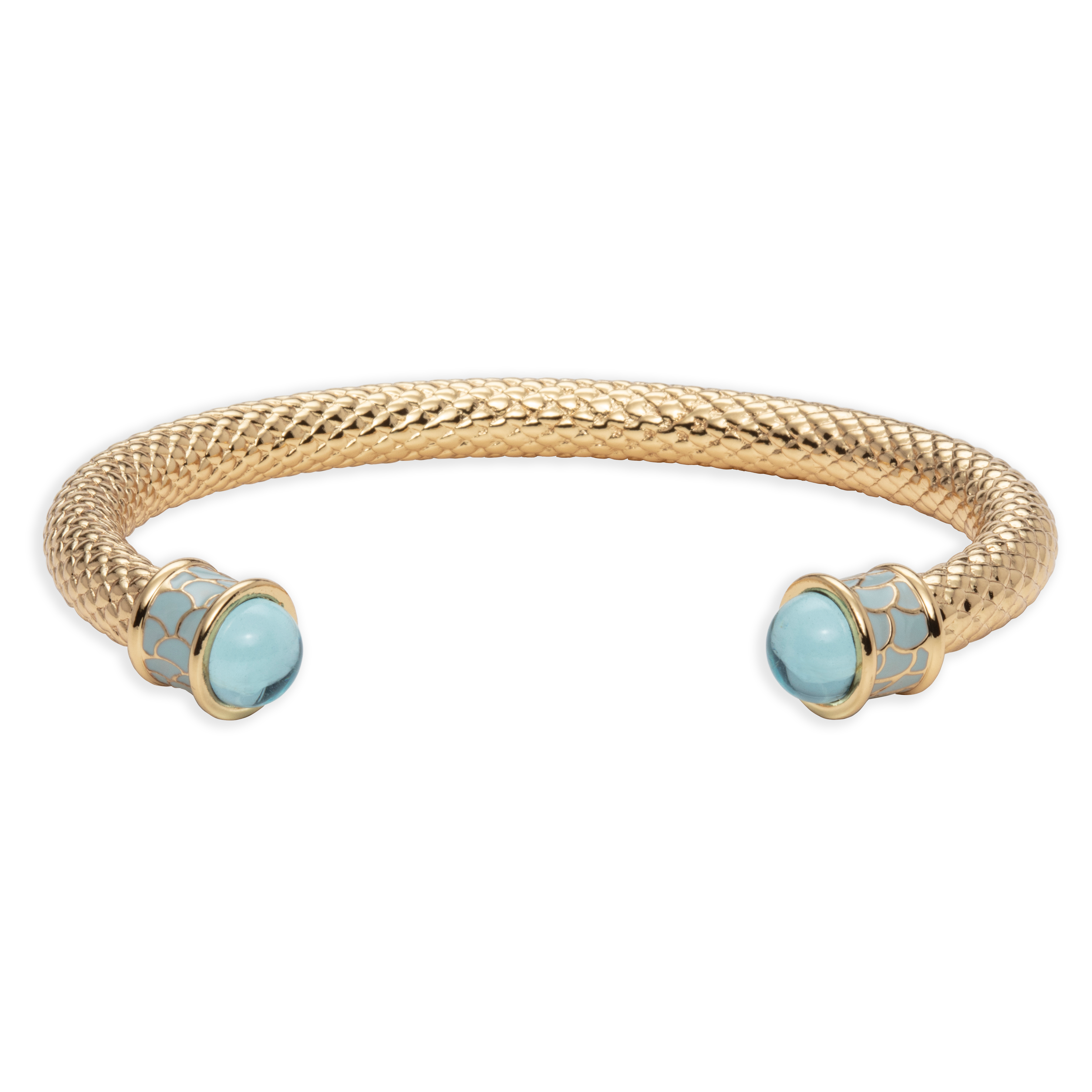 Skinny Cabochon Pearl Turquoise & Gold Bangle