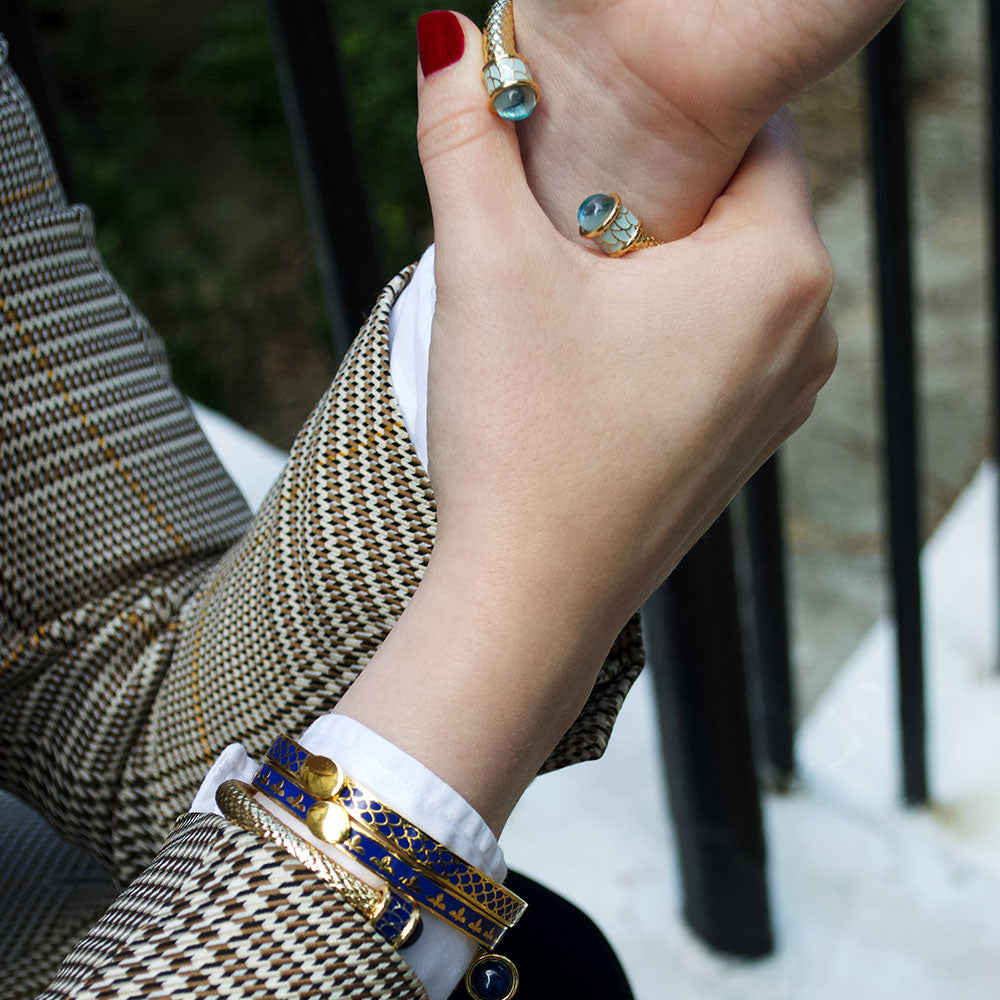 Skinny Cabochon Pearl Cobalt & Gold Bangle