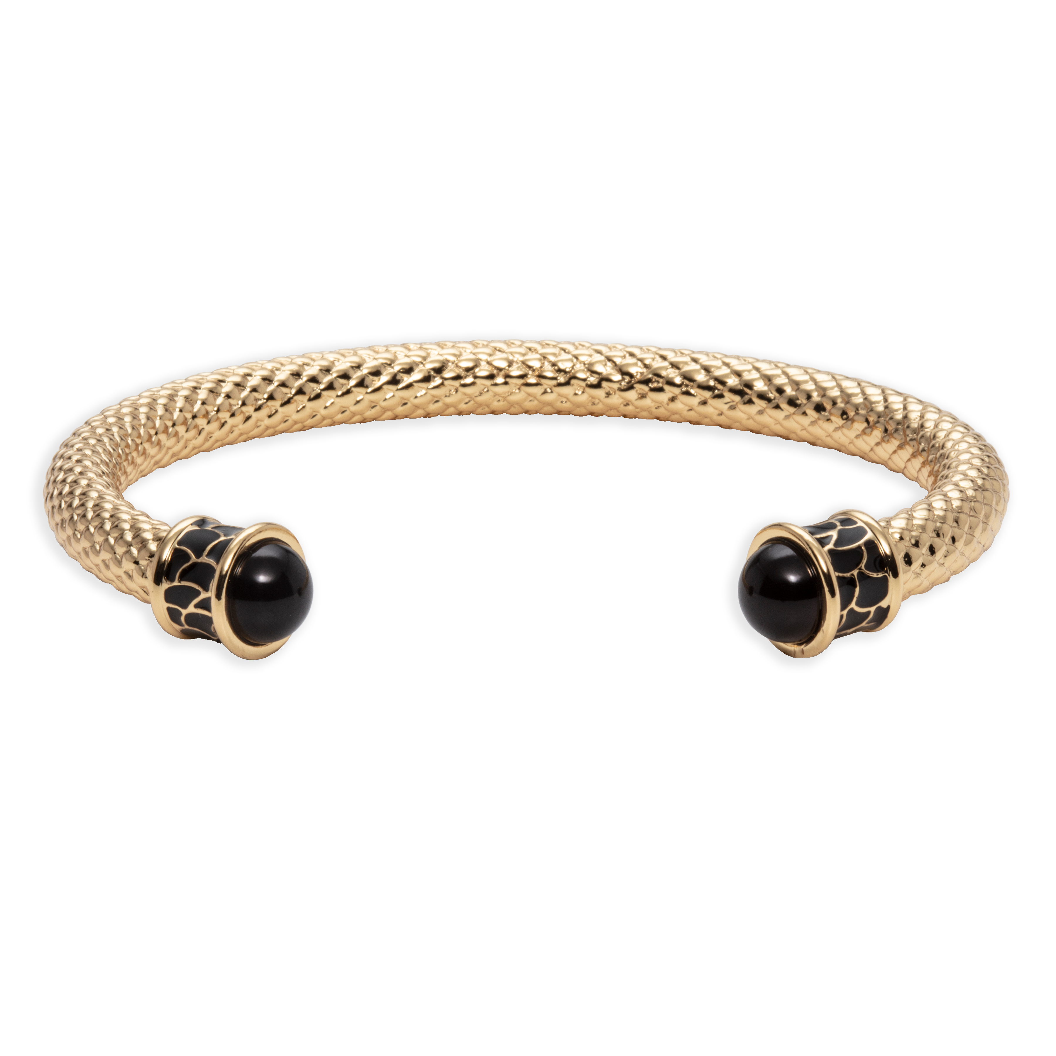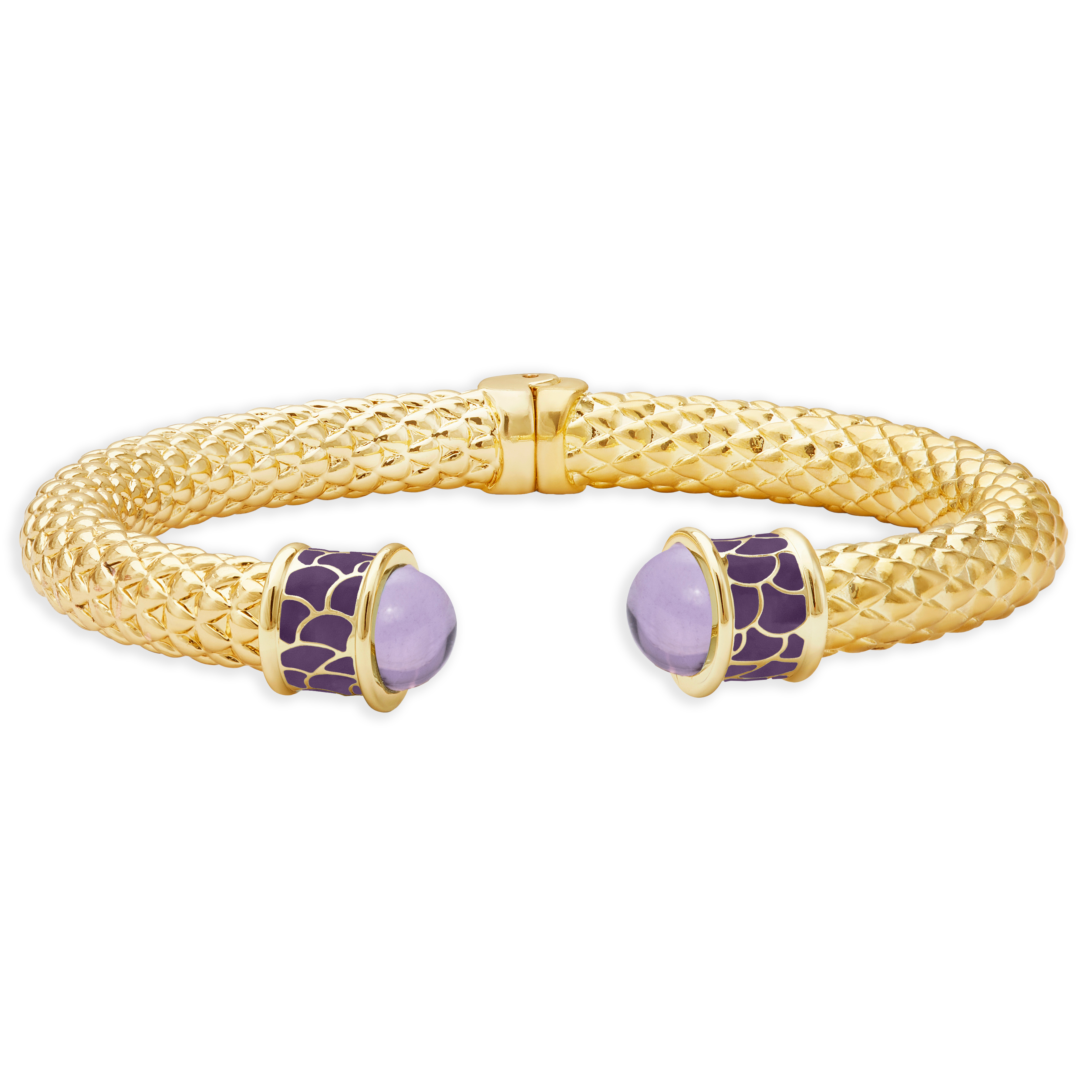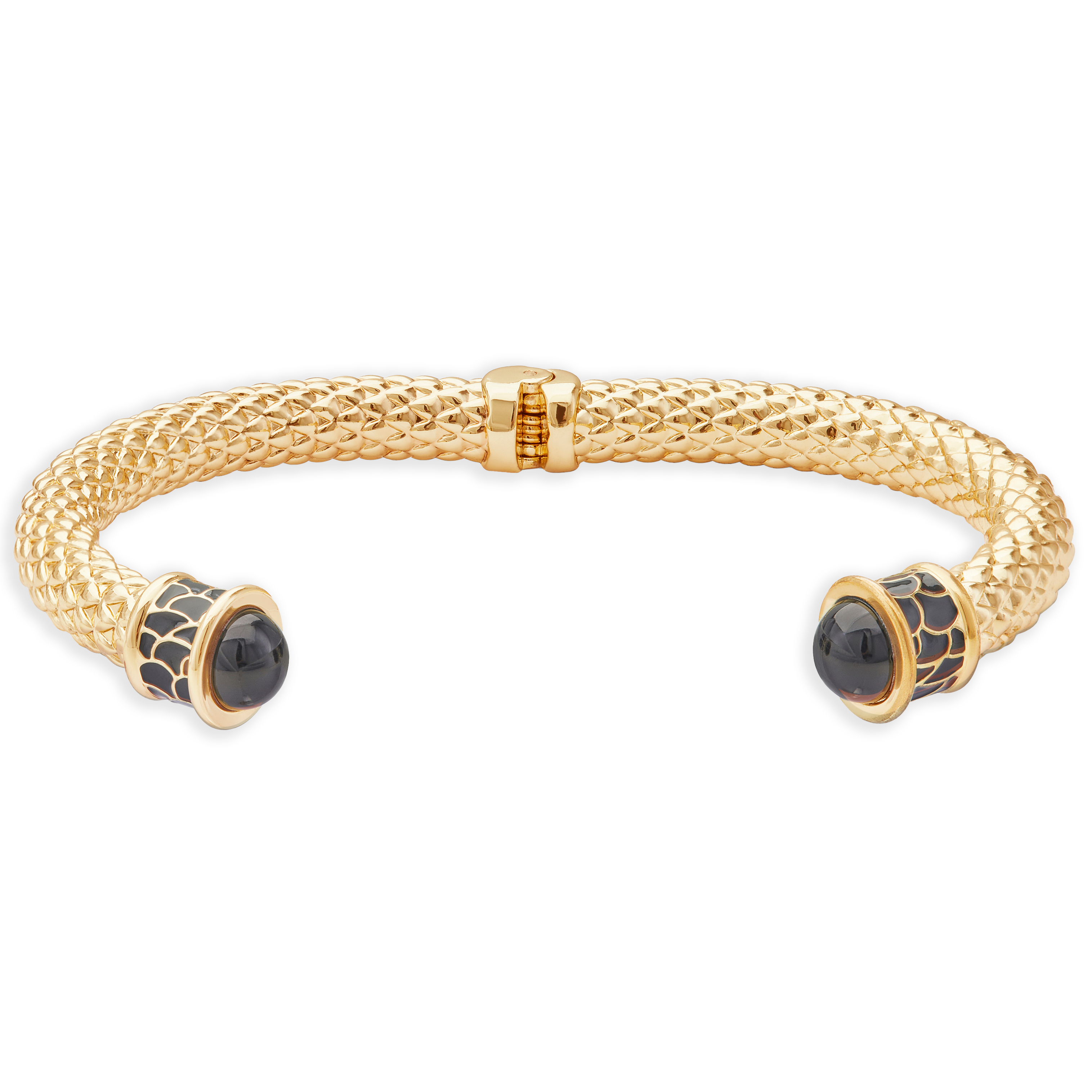 Our torque bangles come in a rainbow of colours. This versatile, hugely popular accessory is finished with glistening glass or enamel cabochons.