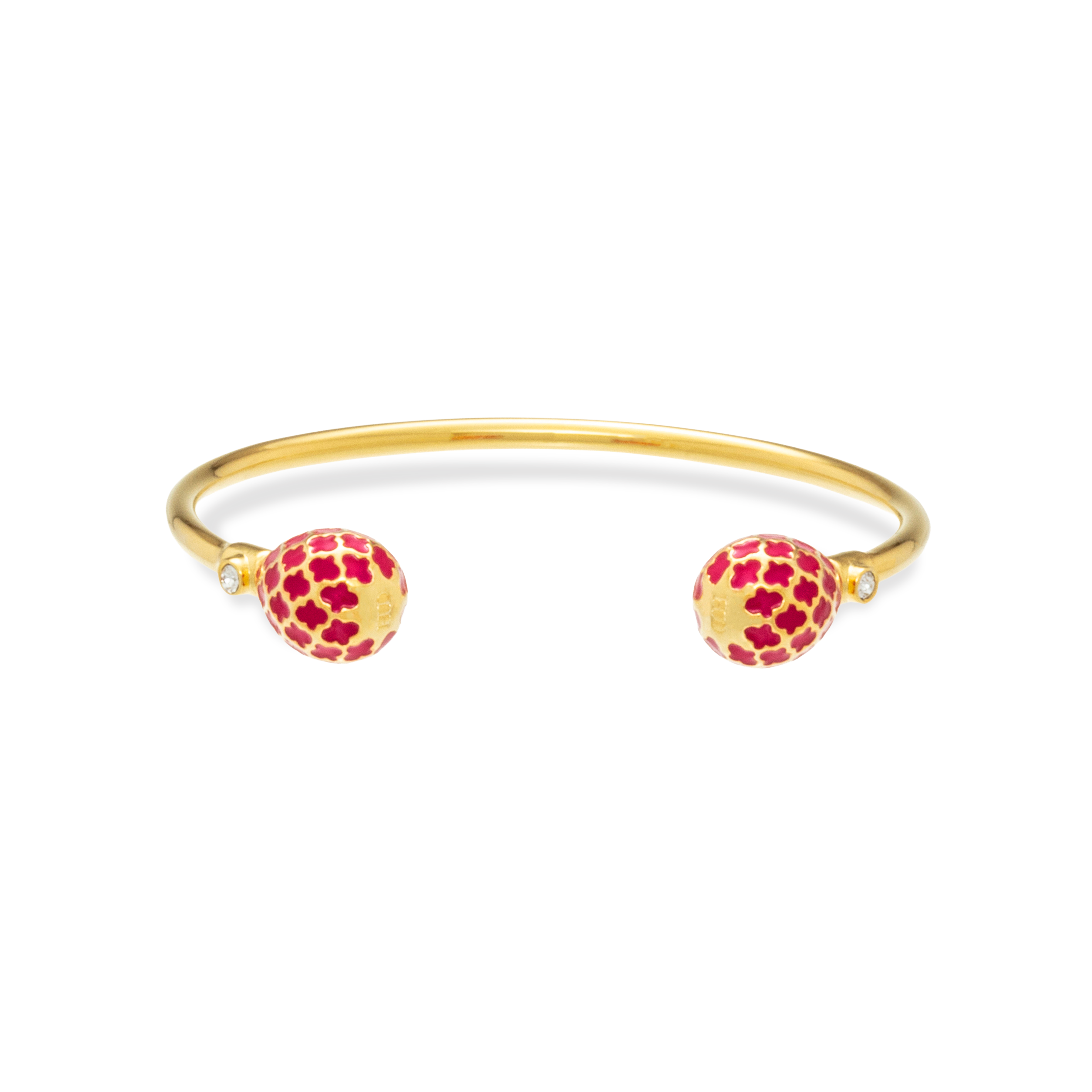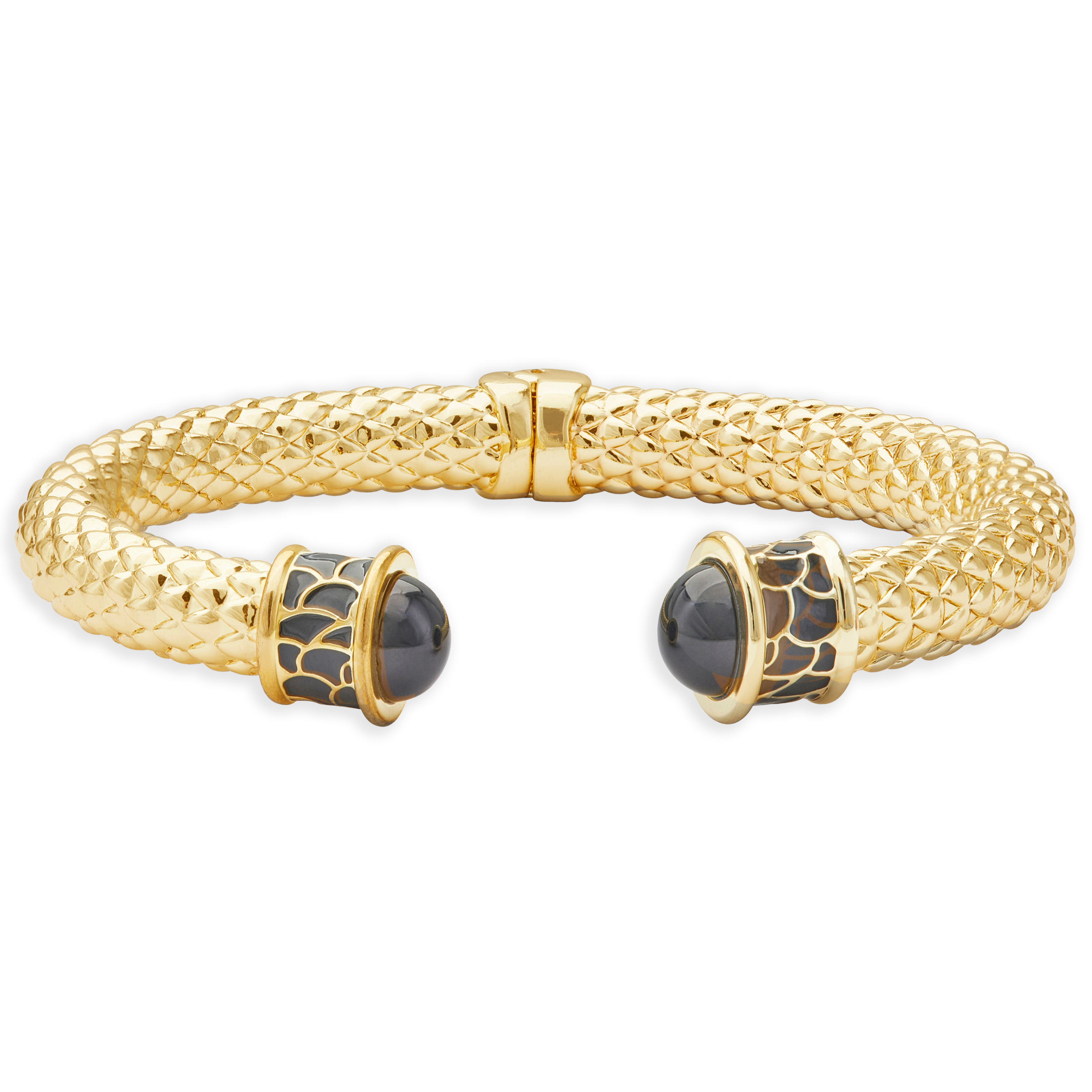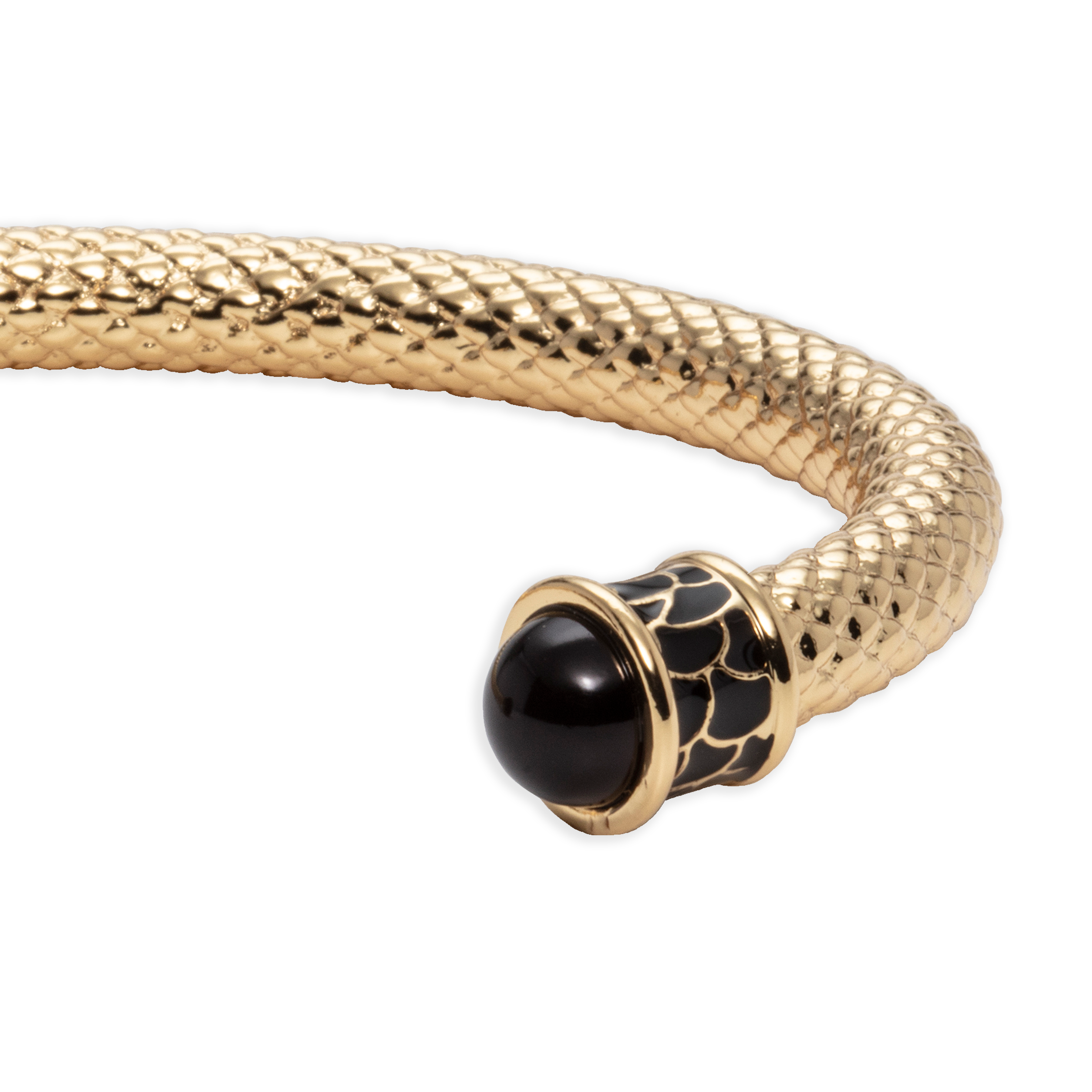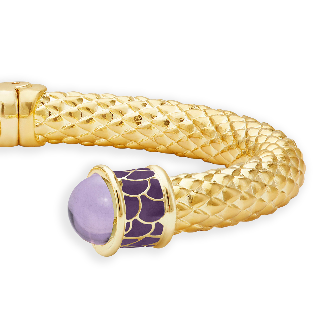 Our torque bangles come in a rainbow of colours. This versatile, hugely popular accessory is finished with glistening glass or enamel cabochons.