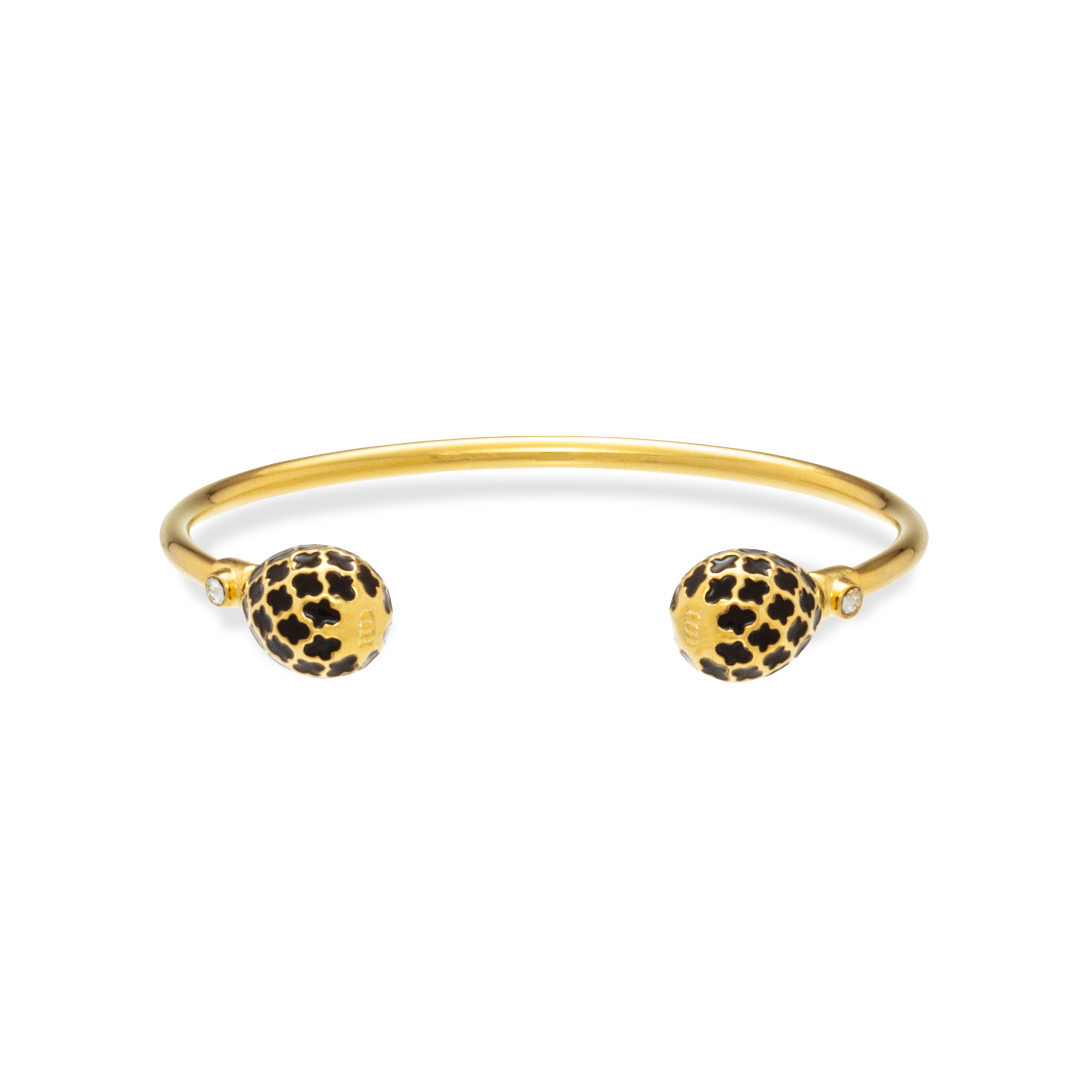Elevate your accessory game with the striking Agama Torque Bangle. This sleek design pairs teardrop style black & gold enamel teardrops with a diamond accent, creating a perfect blend of contemporary style and timeless elegance.