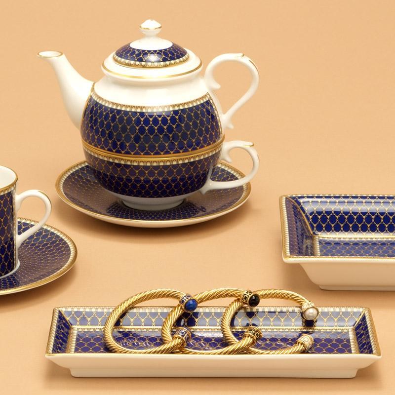 A wonderful gift that epitomises both style and practicality, the Antler Trellis trinket tray in midnight. With design inspired by Gordon Castle, this exquisite piece is made from English fine bone china in the heart of England, and features royal red design. Perfect for storing pens, cufflinks, coins and more!