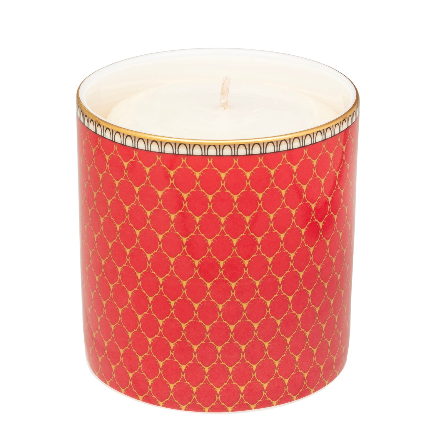 English fine bone china candle featuring our iconic Antler Trellis design in red colour. This elegant piece has been finished in 18ct gold gilding on its rim.