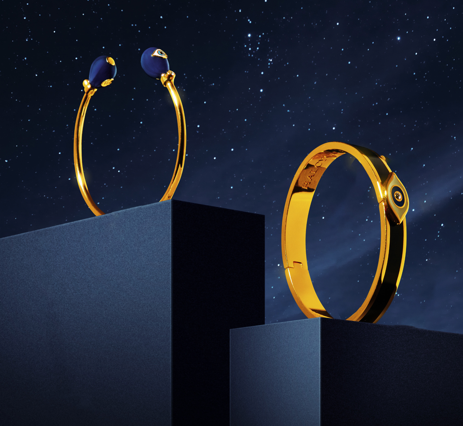 Evil Eye Midnight Blue & Gold Torque Bangle
