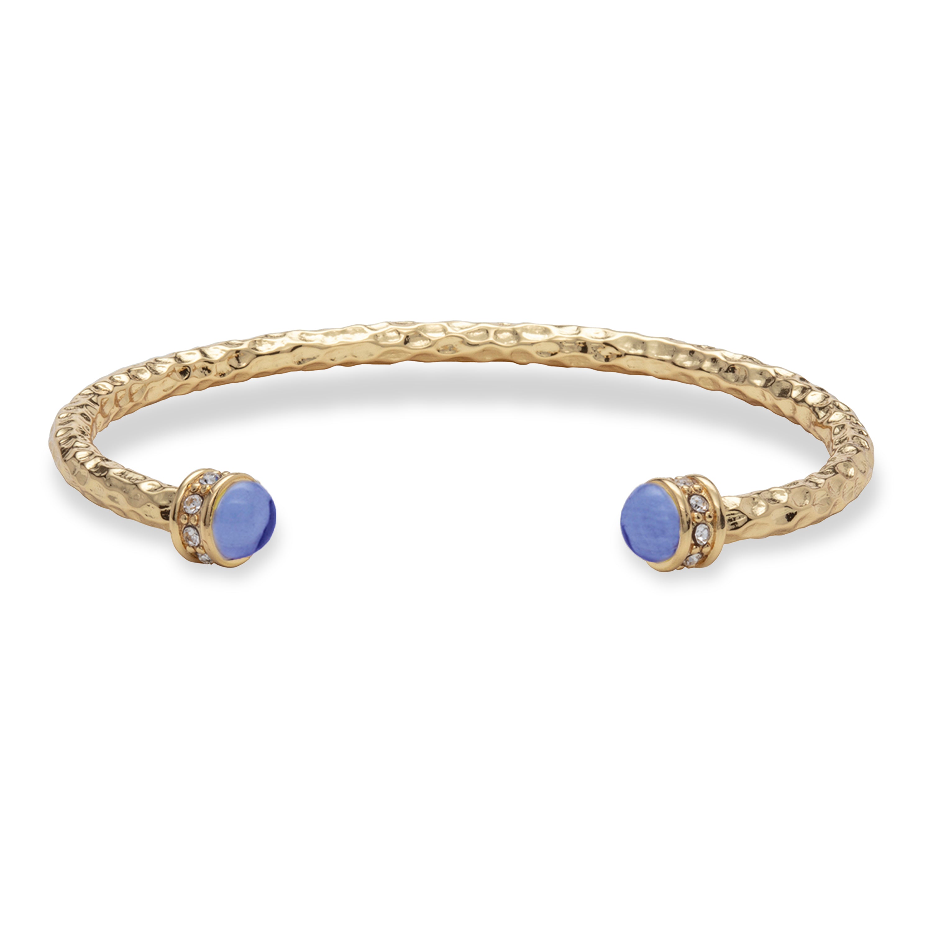 This Hammered Torque bangle has an eye-catching, irregular texture and features glistening glass cabochons at either end. Choose our forget-me-not colourway for an injection of fresh, floral style to your accessory collection.