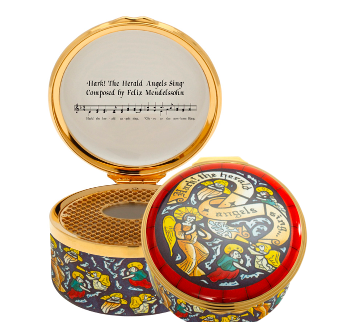 Once opened, the box softly plays the much-loved carol 'Hark the Herald Angels Sing'.