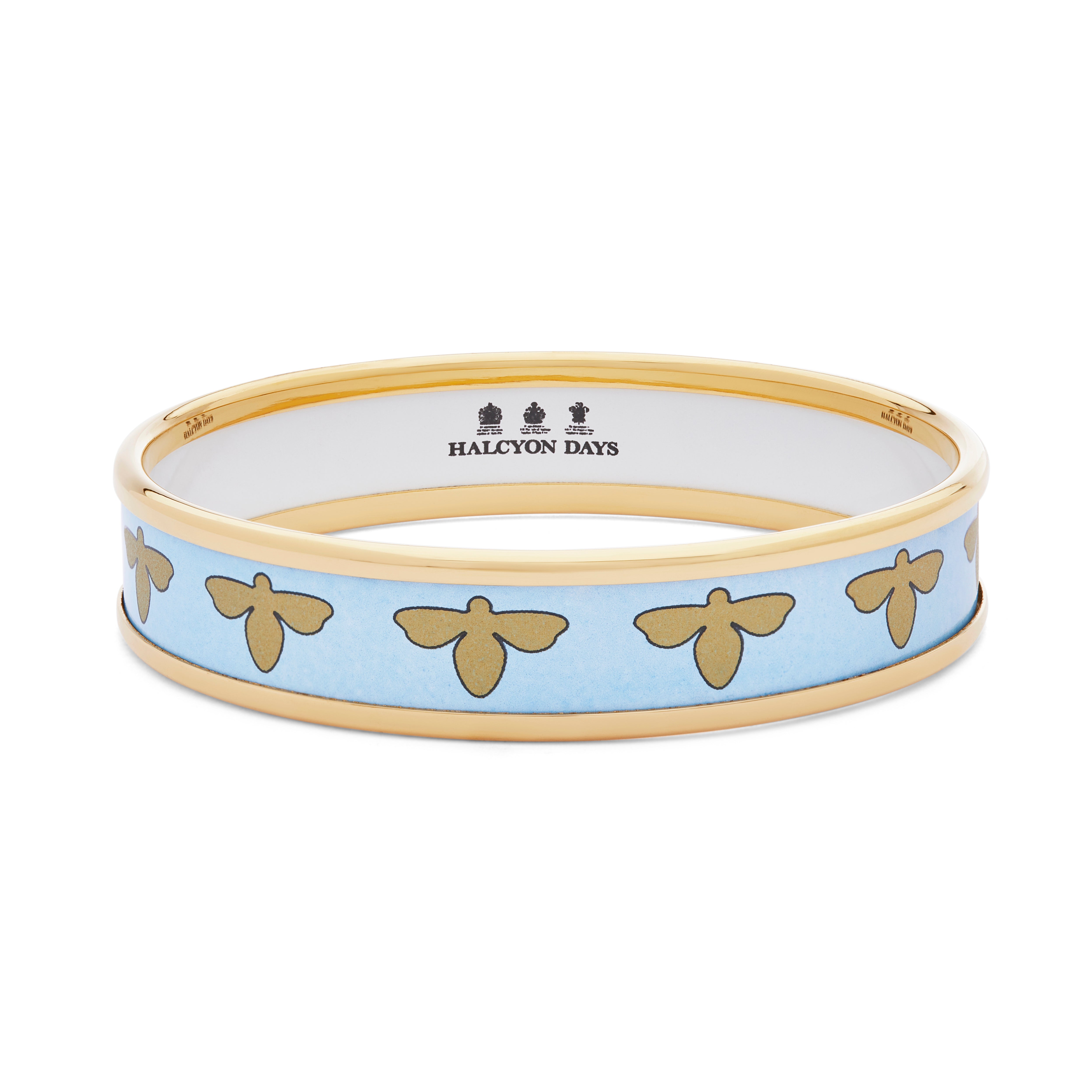 It slides easily over the wrist and has been handcrafted from enamel by the Halcyon Days artisans. It's finished with 18ct gold-plated raised edges.