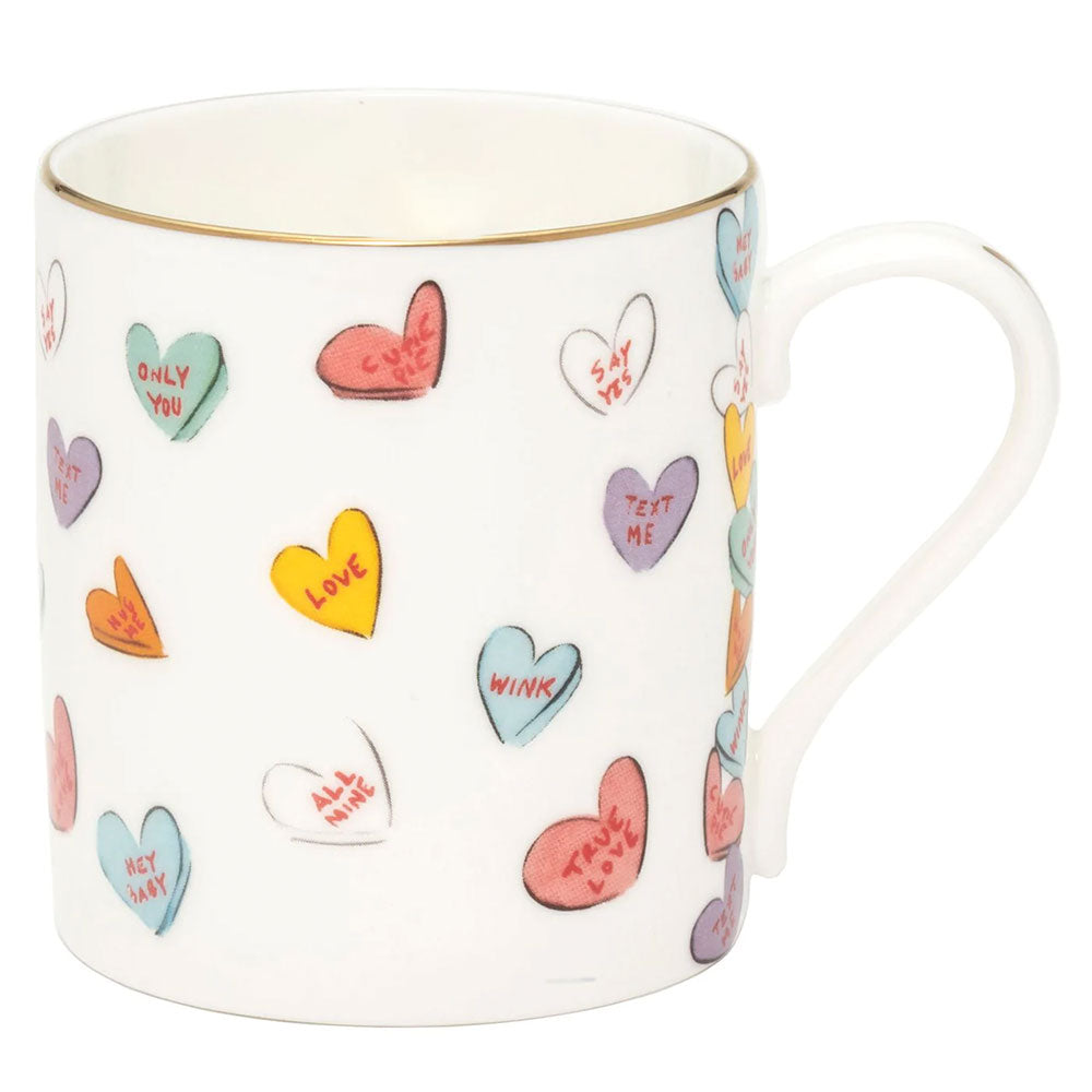 Part of our treasured Love Hearts collection, envisioned with artist Tug Rice, this mug radiates a romantic whimsy that captivates teatime against a backdrop of passionate white.