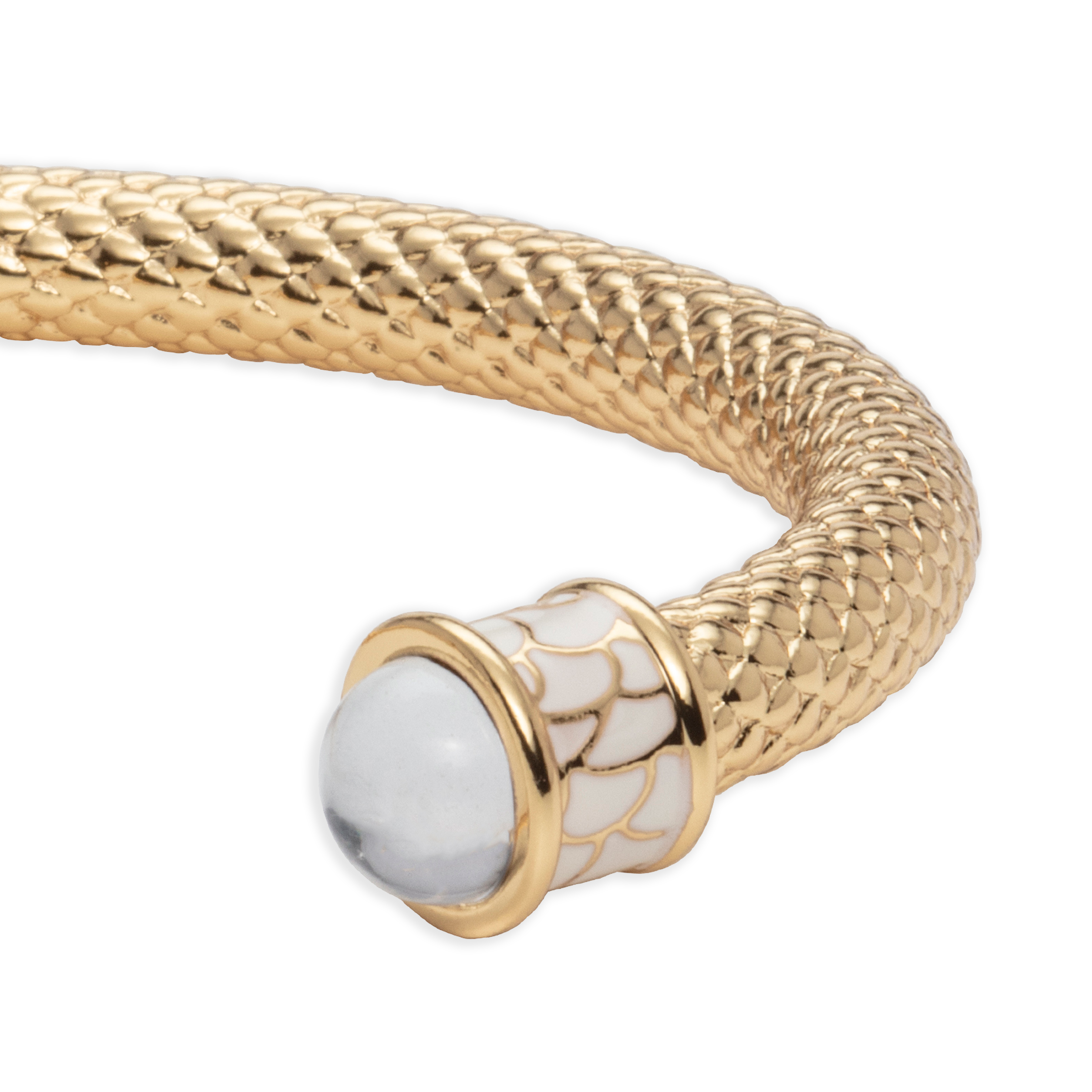 Our Salamander Torque bangle is crafted from 18ct gold plated brass and can be squeezed for the perfect fit.