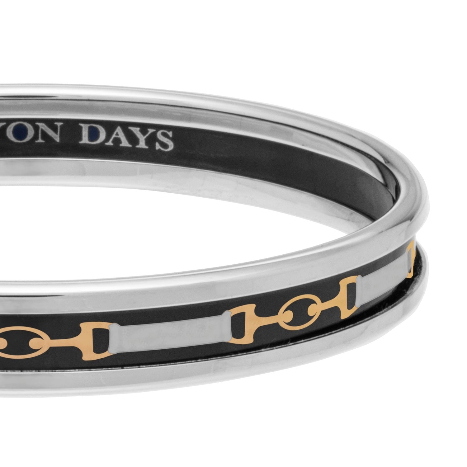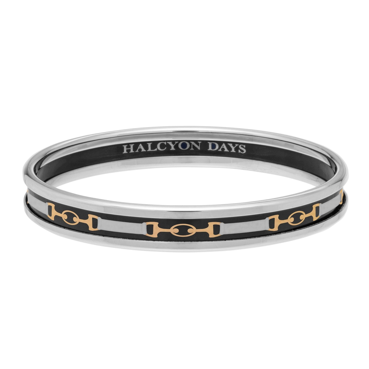 This 6mm skinny enamel bangle has been handcrafted and hand-decorated in England by the Halcyon Days artisans. Its design is destined to delight any equine enthusiast and it makes a winning piece to wear to a day's racing.