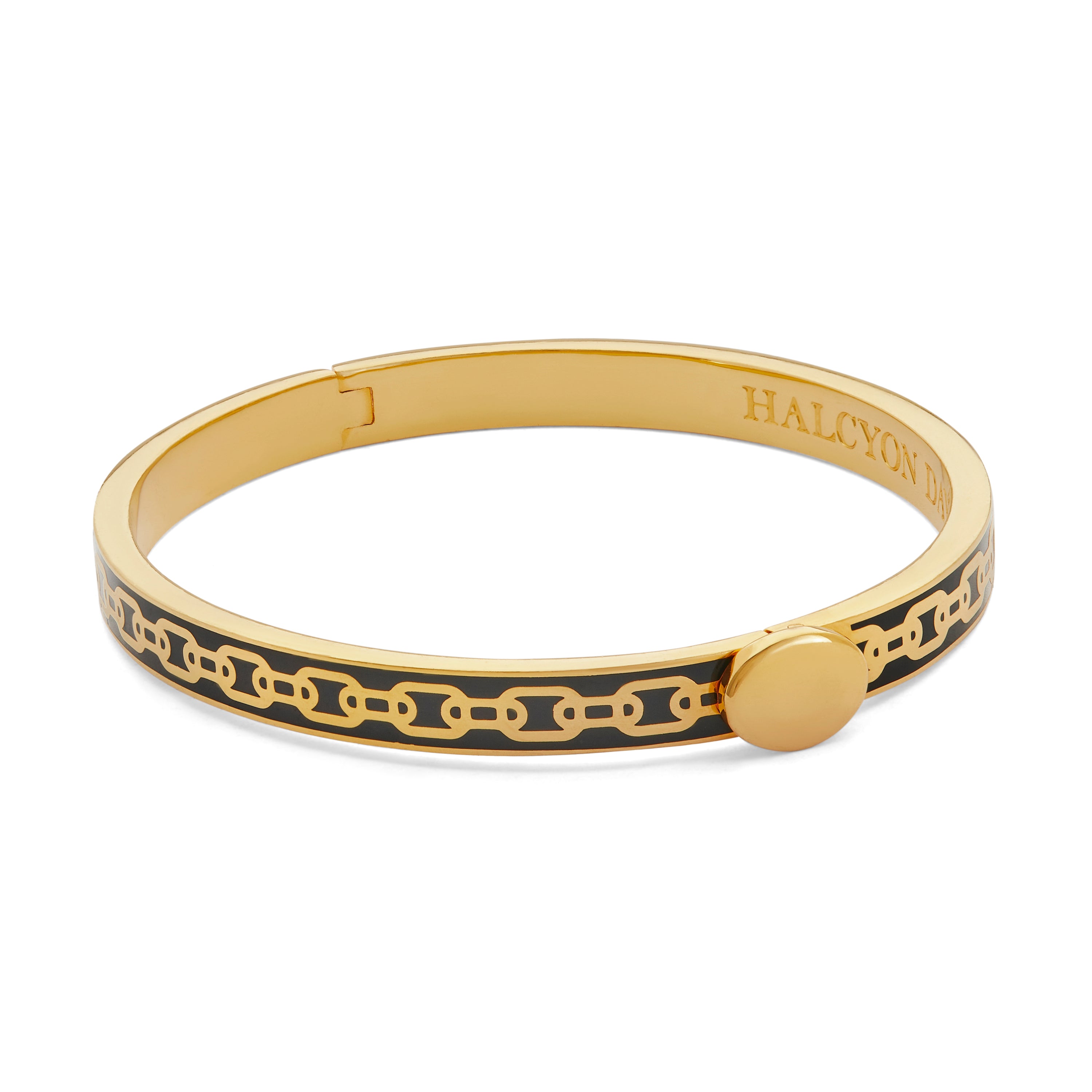 Our skinny chain bangles are crafted from 18ct gold-plated brass and decorated with enamel.