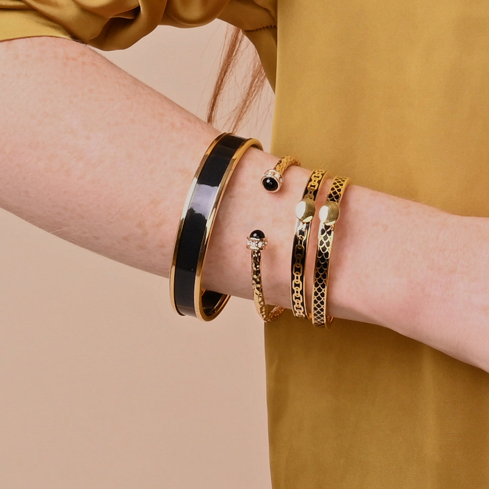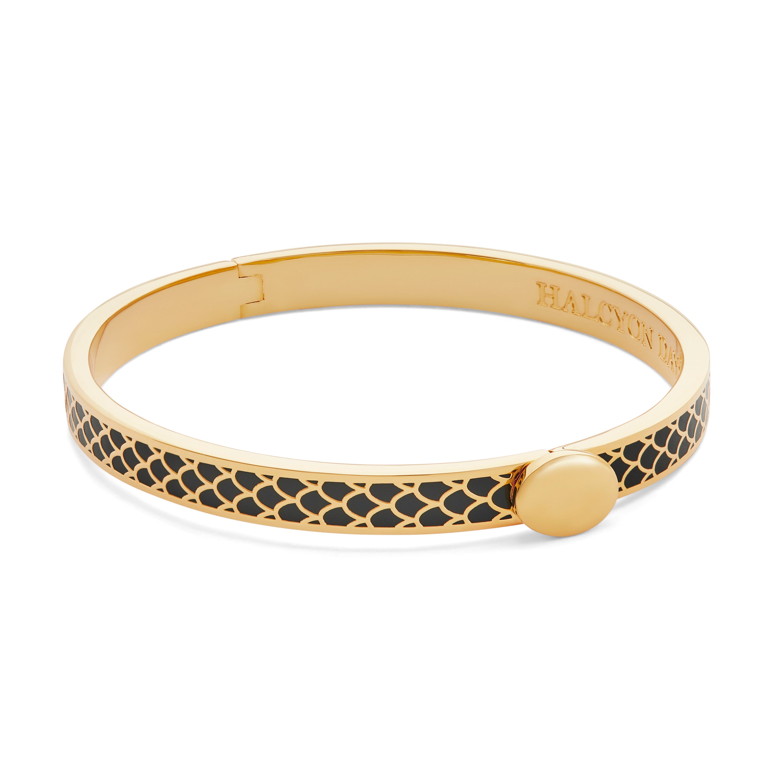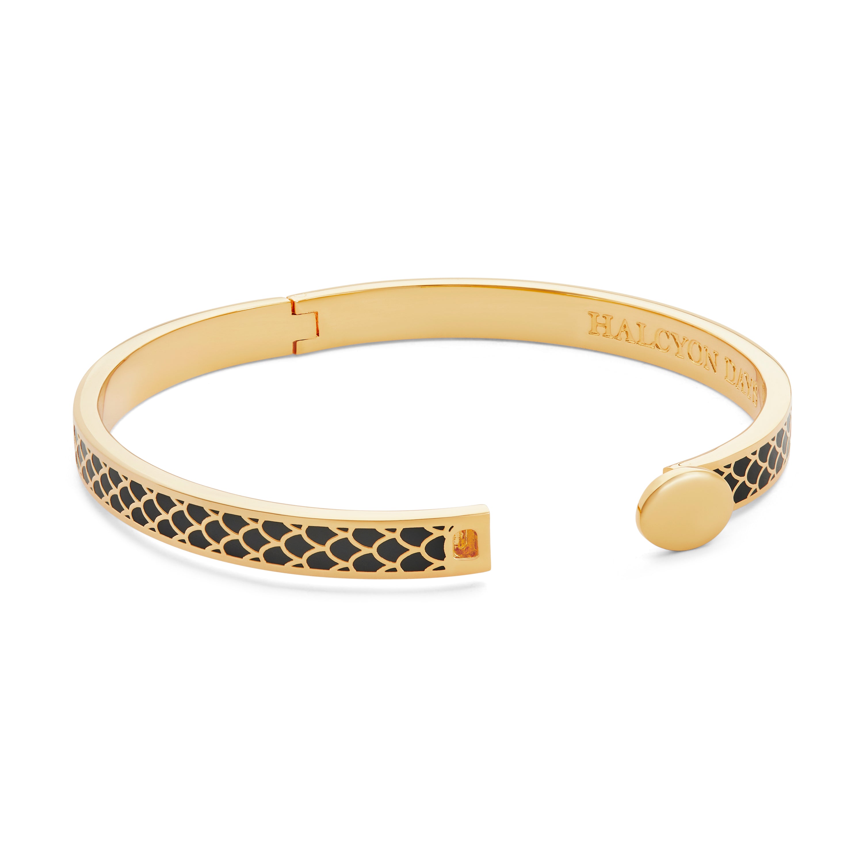 The Skinny Salamander bangle represents a fresh take on a beloved Halcyon Days silhouette. It has been crafted from premium brass plated with 18ct gold.