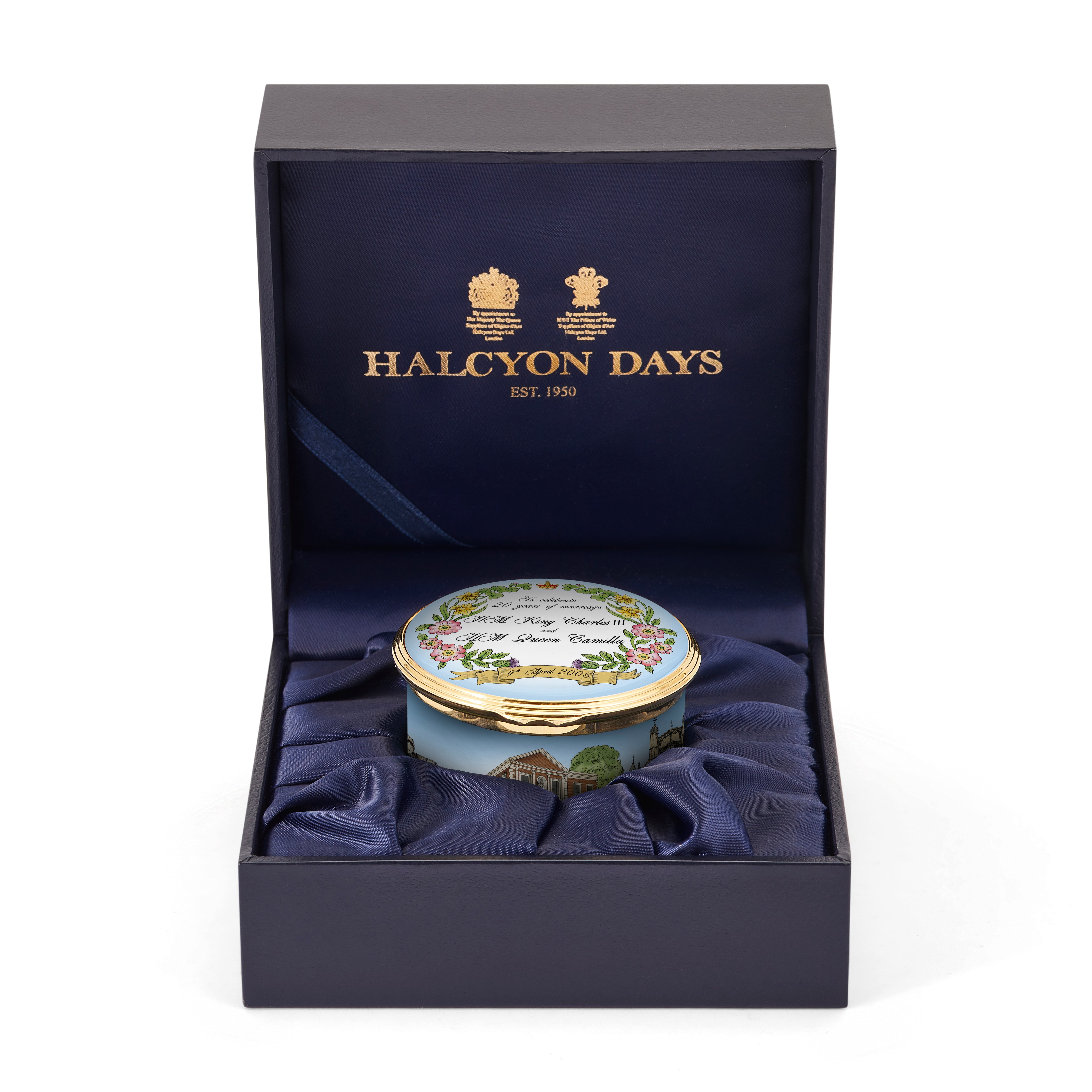 In honour of this remarkable milestone, we are delighted to unveil a Limited Edition Enamel Box — a handcrafted tribute to Their Majesties' wedding day. This exquisite piece captures the grace and enduring love of their royal union, offering a unique opportunity to own a part of history.