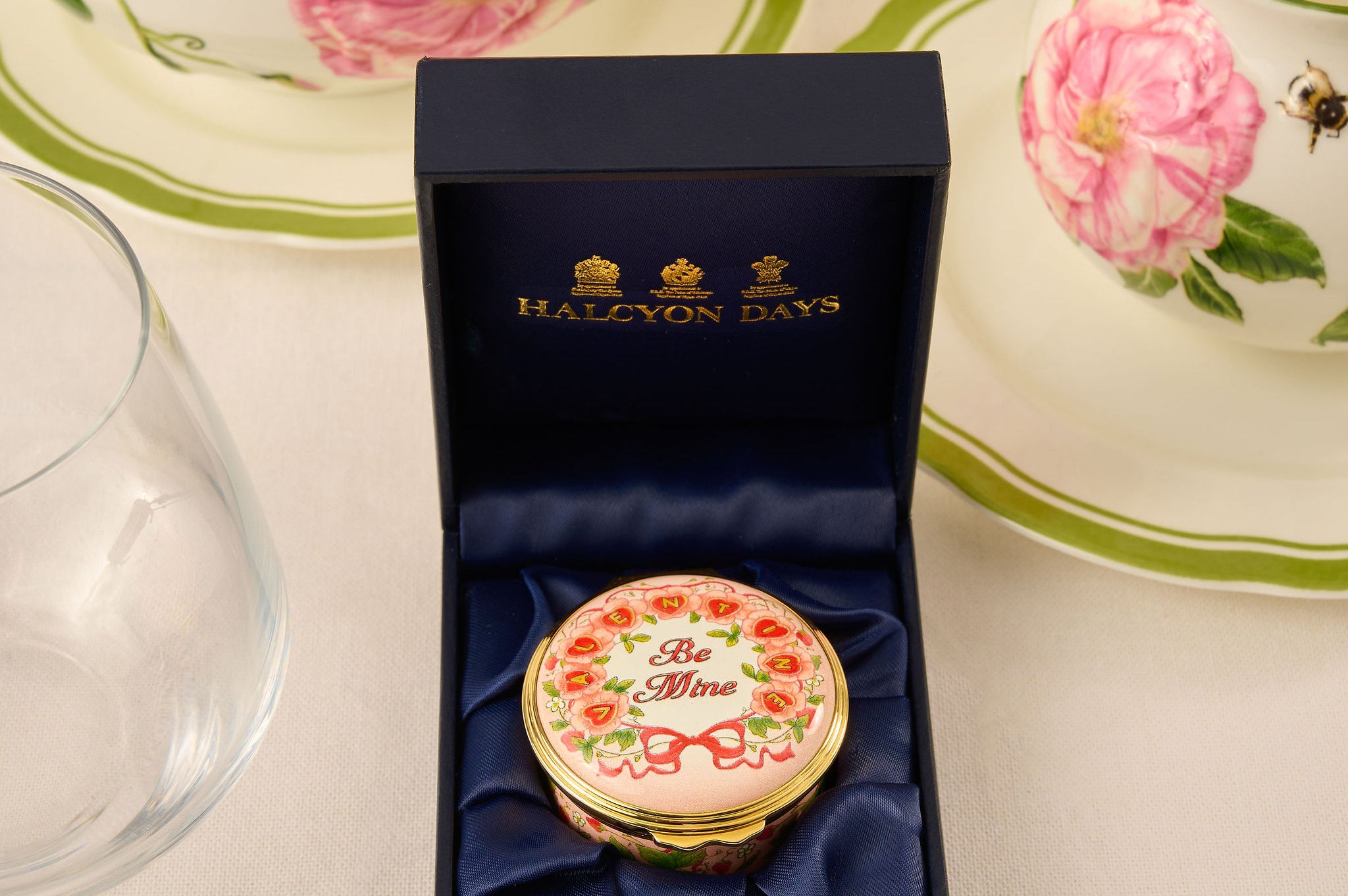 This elegant "Be Mine" Enamel Box is perfect for gifting to a loved one on Valentine's Day. Entirely handmade with traditional methods from rich pinks of enamel on copper. The meticulously decorated lid is inspired by a heritage floral print and features a stunning display of hearts spelling out Valentine's encircling "Be Mine" at its core. Within this Enamel the timeless declaration "Happy Valentine's Day 2026 " promises long-lasting devotion.